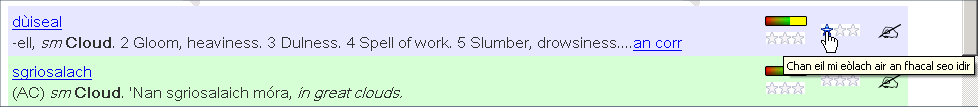 Sin mar a chomharraicheas tu faclan air a bheil thu eòlach 's a chleachdas tu fhèin 'nad chainnt no ann an sgrìobhadh.