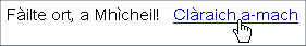 thu teachdaireachd aig barr na duilleig gu bheil thu a-staigh a-nis