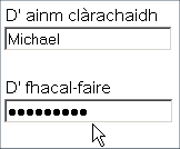 d' ainm-clàrachaidh agus d' fhacal-fair a chur a-steach: