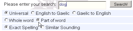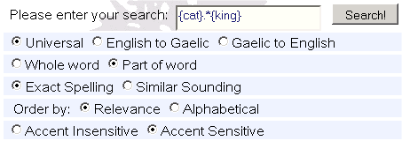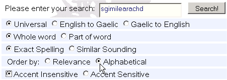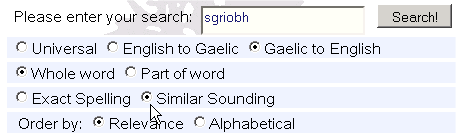 using that option will return words like sgrìobh, sgarbh, sgrìbh, sgrìobha, sgreubh...:
